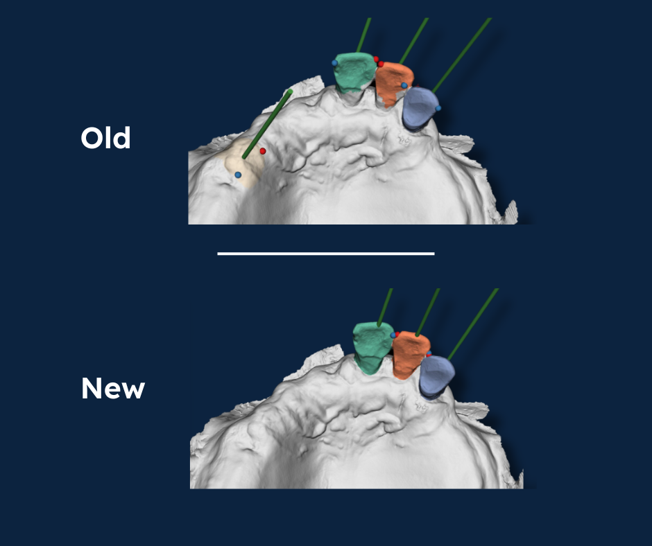 Greatly improved automated fusion of CBCT roots with IOS crowns. There is now a smoother transition between the IOS crown and CBCT root and better closing of the crown in the interproximal region. Moreover, the overall robustness and speed is improved.