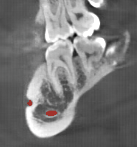 Automatic computation of the nerve canal paths in the mandibular bone.