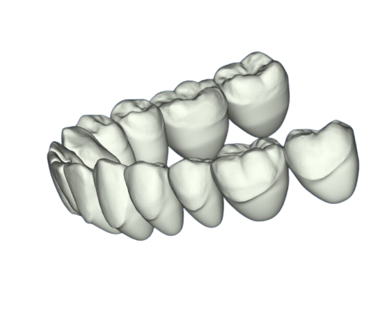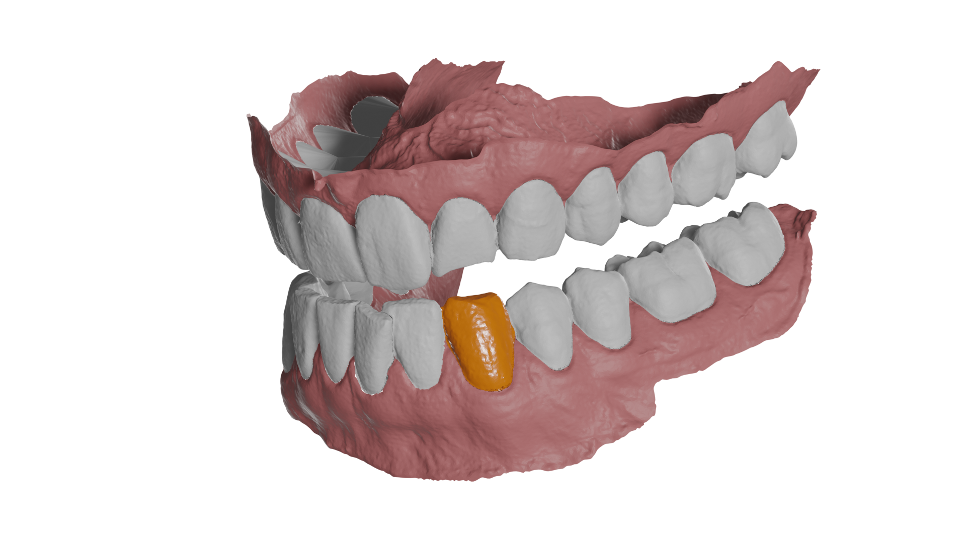A single object that combines the crown of the Intra-oral scan with the roots from the Cone-Beam CT-scan. This results in the most accurate representation of the tooth possible.