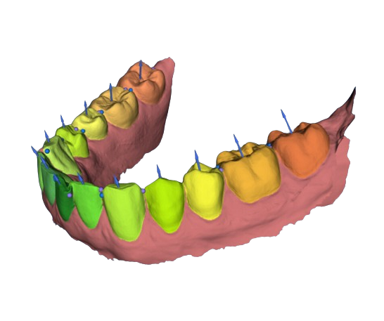 Automatic generation of closed crown meshes based on the intra-oral scan. The resulting meshes have a closed bottom, resulting in visually more appealing models.