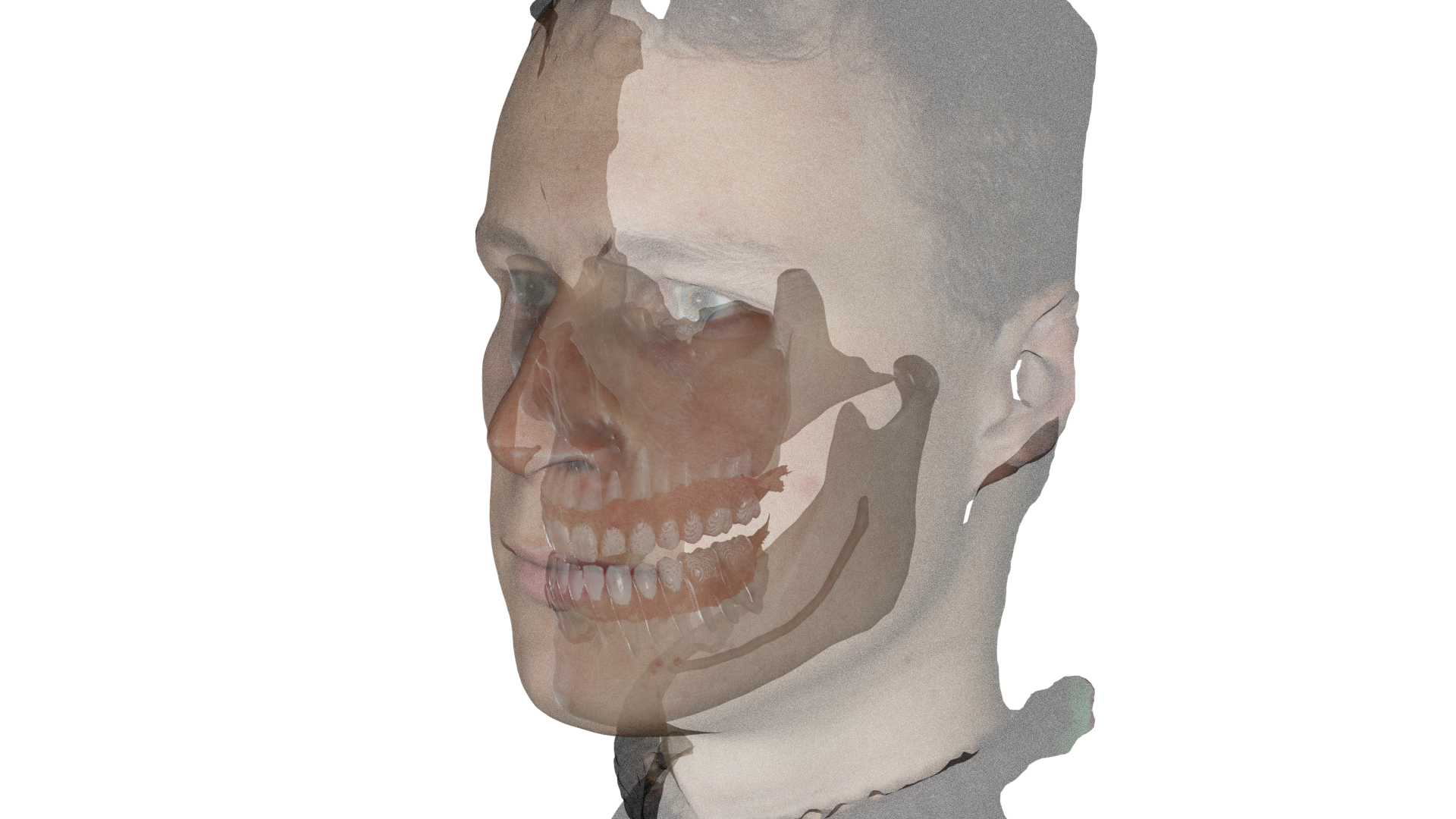 Automatic registration (matching) of the facial scan to the Cone-Beam CT-scan.