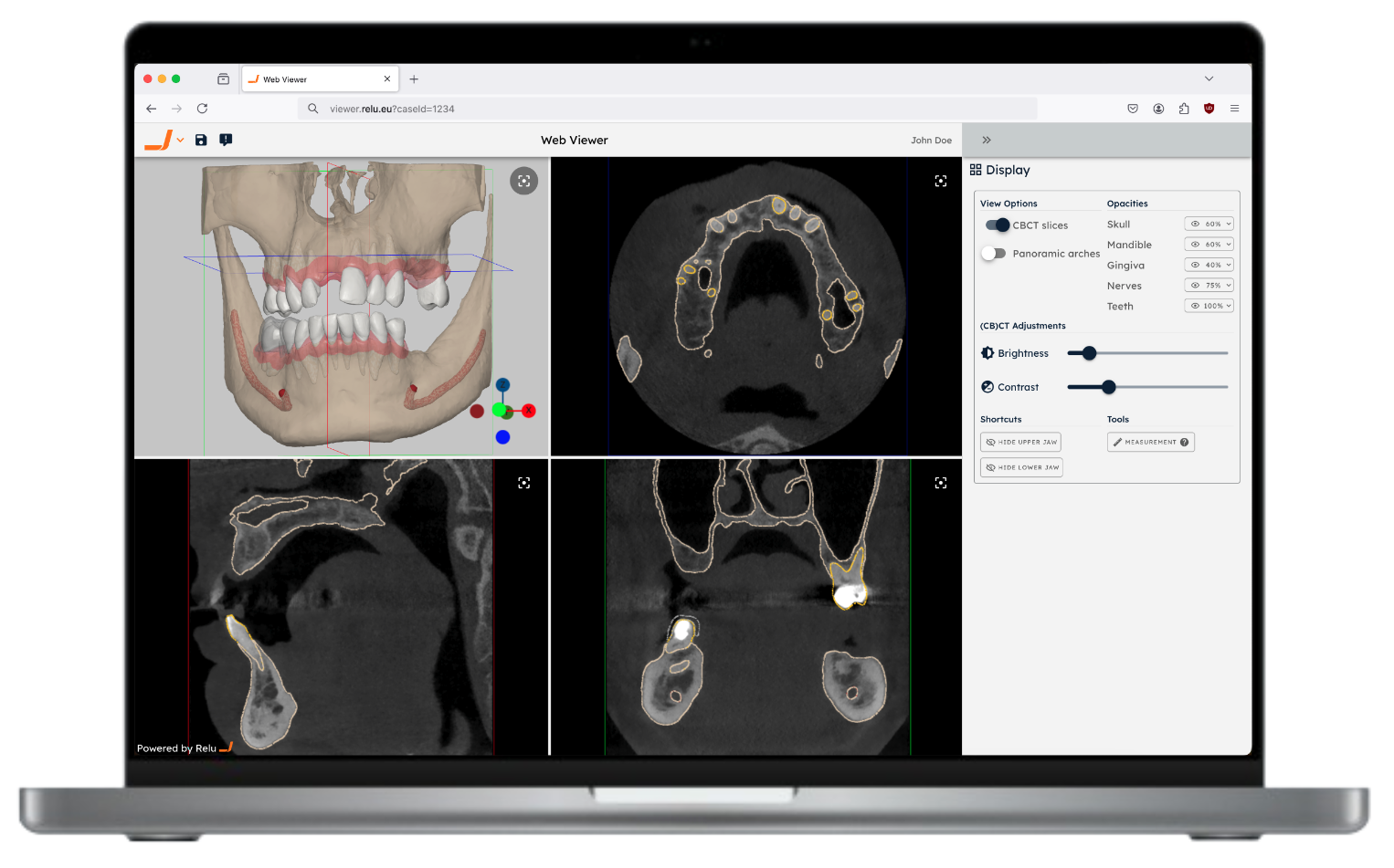 Ability to get back a URL to a web viewer, displaying the results in 2D and 3D, directly within the browser of your end-user. This viewing session is specific to your job (case) and can be easily shared with others, e.g. for quick inspection, for patient communication or for easy collaboration on a case.